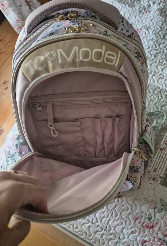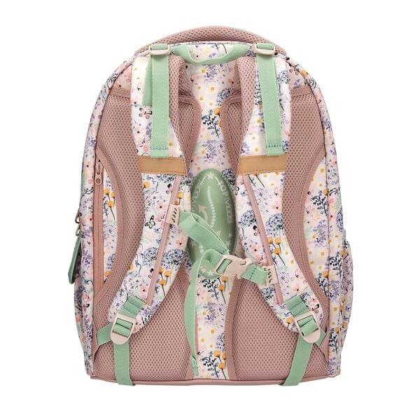 Ghiozdanul scolar TOPModel Summer Feeling aduce un plus de stil si rafinament in fiecare zi de scoala. Cu un design romantic, decorat cu flori delicate si fluturi in nuante pastelate, acest model este completat de accente moderne in culori de salvie.
