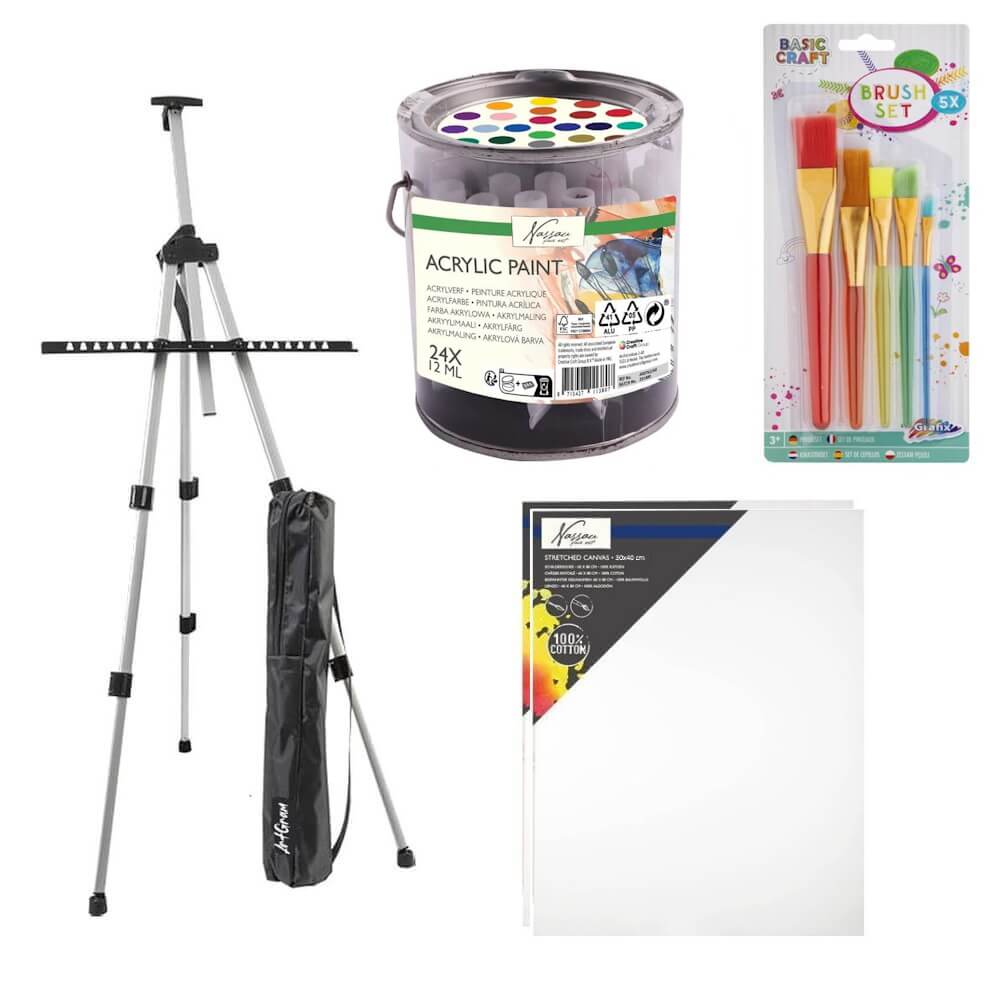 Pachet Nassau Fine Art sevalet, 2 panze pictura, 6 culori