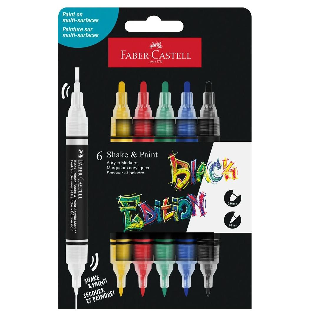 Set 6 markere acrilice Shake&Paint – culori clasice Faber-Castell