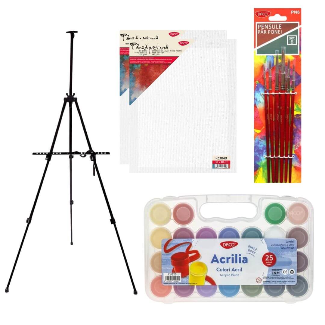 Set pictura cu sevalet Daco, culori, pensule si panza